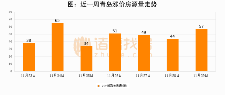 根据诸葛找房数据显示,青岛24小时涨价房源量为57套,较11月28日增加13套,环比上涨29.5%。与此同时,涨价房源占比小幅扩大,业主信心有所提升。