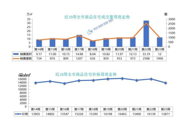 价格方面,上周青岛新建商品住宅均价为13871元/㎡,下降2268元,降幅为14.06%。