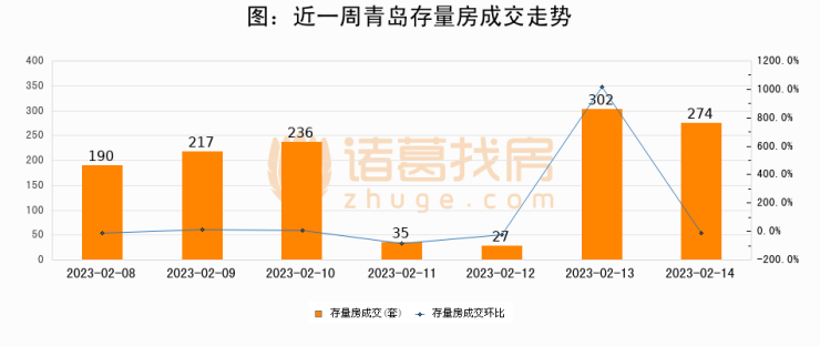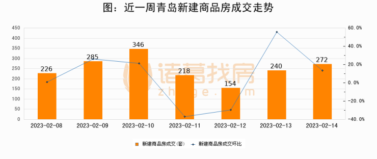 【青岛成交日报】02月14日新房成交272套、二手房274套;涨价房源197套