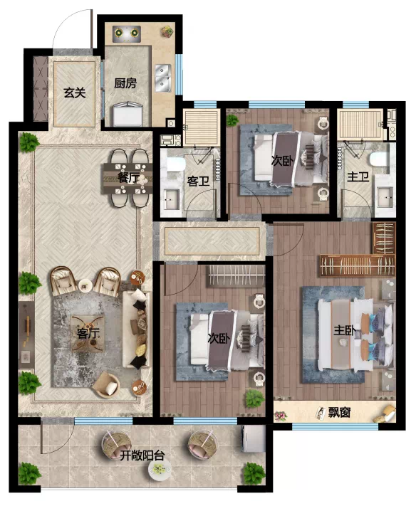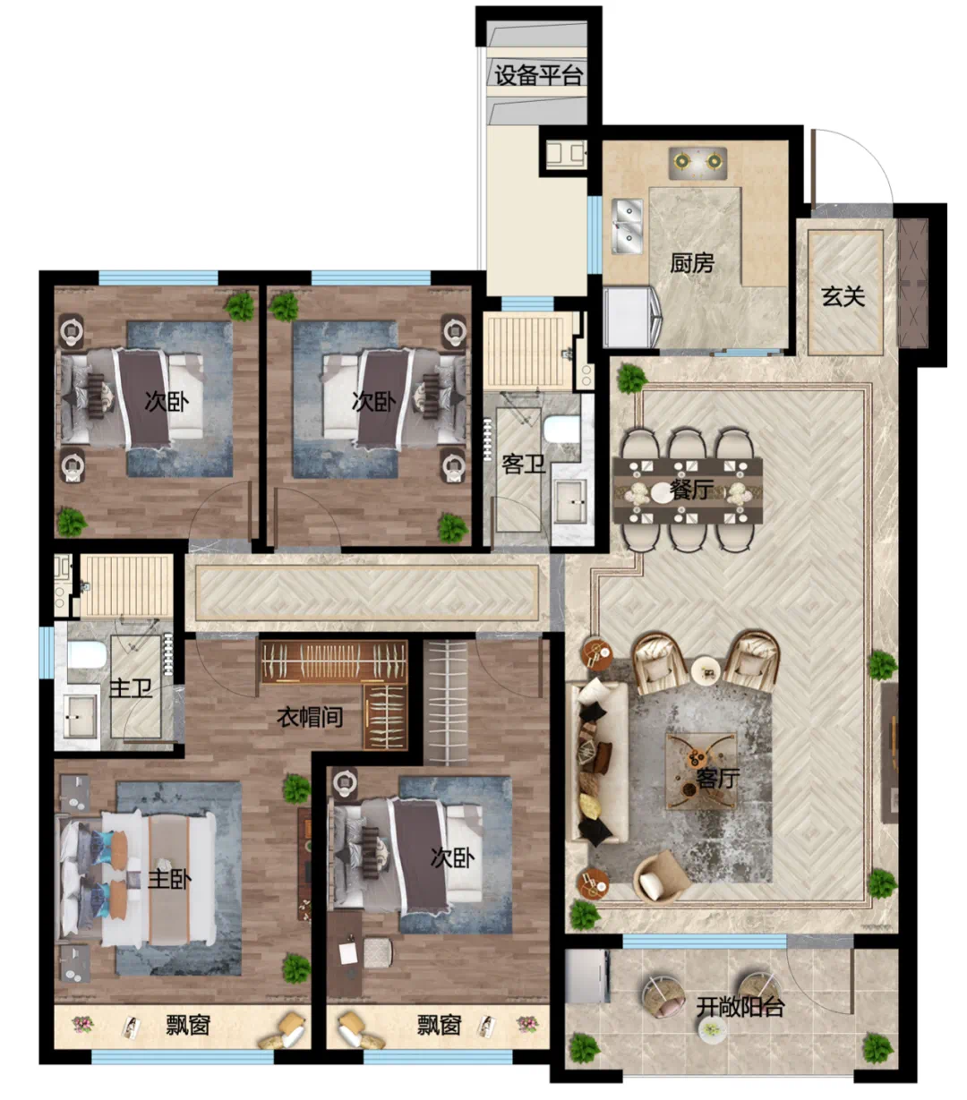 每一间都沐浴阳光,满足三代同堂而居的需求