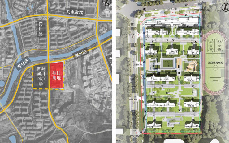 从城市界面上看,昆仑新项目所在片区很纯粹。地块东侧为规划中学用地,西侧是宾川路小学。沿河两岸分布如万科生态城、如园等众多高端社区,距离松乐汀商业、海信创智谷、海洋大学直线距离不到2公里。没有大拆大建的喧嚣,只有新城市的“高大上”,较之北东李世园板块城市界面成熟的多,未来新晋“高端品质住区”可见一斑。