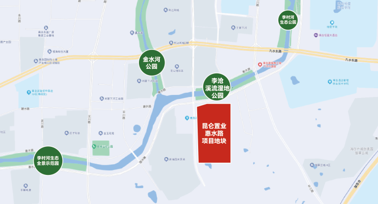 从生态资源上看,该项目一线临河,800米范围内,地块北侧金水河、李村河交汇,李沧溪流湿地公园、金水河湿地公园、李村河生态全景示范园、李村河生态公园四大公园齐集,构成李村河上游绝佳的河岸景观线。