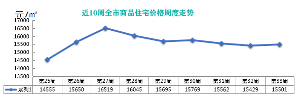 价格方面,上周青岛新建商品住宅均价为15501元/㎡,上涨72元/㎡,涨幅为0.47%。
