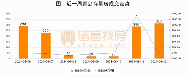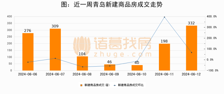 【青岛成交日报】06月12日新房成交332套、二手房313套;涨价房源57套