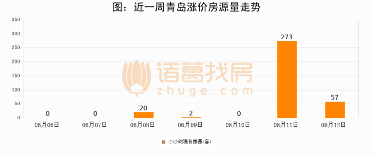 根据诸葛找房数据显示,青岛24小时涨价房源量为57套,较06月11日减少216套,环比下降79.1%。与此同时,涨价房源占比小幅回落,对于购房者来说是一个入市窗口期,购房者可抓住时机入市。