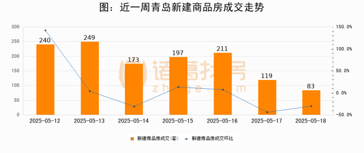 【青岛成交日报】05月18日新房成交83套、二手房55套;