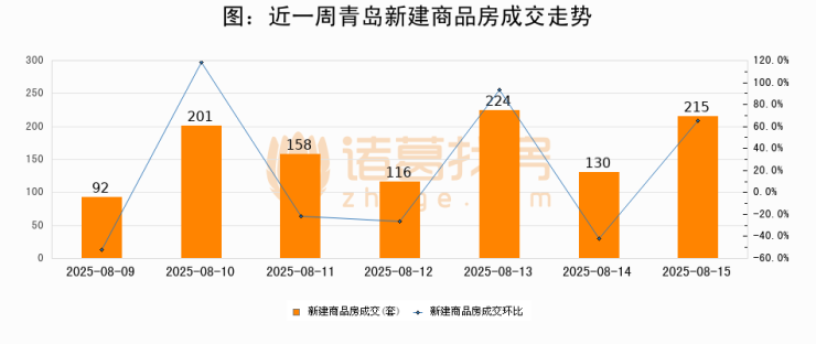 【青岛成交日报】08月15日新房成交215套、二手房211套;