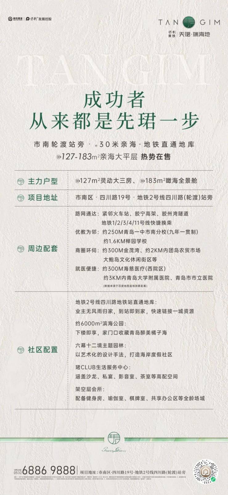 目前,保利青铁丨天珺・瑞海地建面约127-183㎡亲海大平层热势在售,首付50万起,少量市南企事业单位团购通道已开启,为向往市南的购房者提供了难得的入场机会。