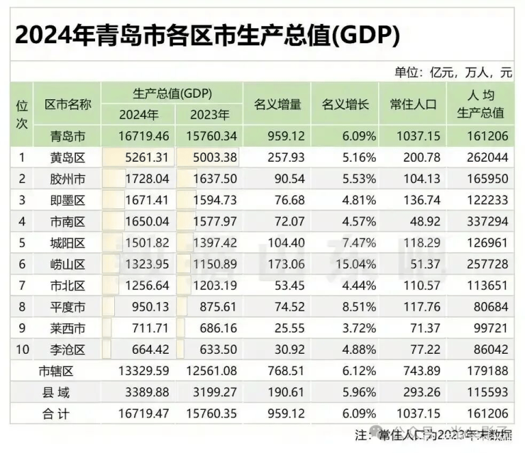 数据更能印证市南的实力:2024年市南区人均GDP约33.7万元,稳居青岛市内四区第一!(数据来源:数据说经济、微市南、凤凰网青岛)
