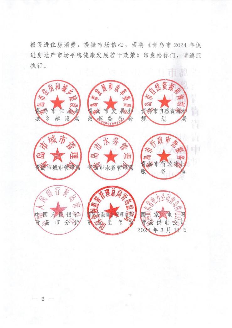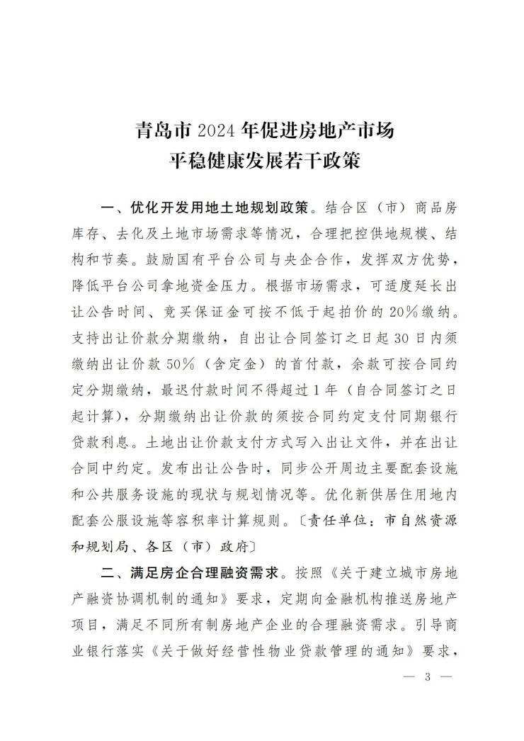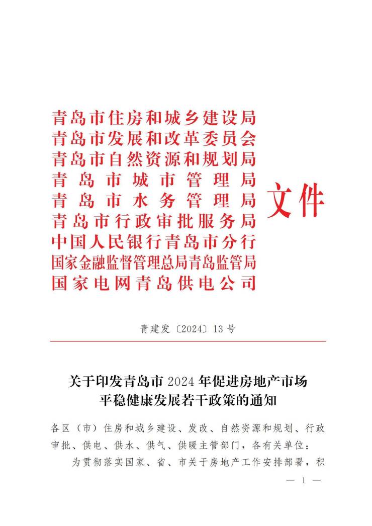 青岛市住房和城乡建设局发布《关于印发青岛市2024年促进房地产市场平稳健康发展若干政策的通知》,旨在促进青岛市房地产市场平稳健康发展,化解房企风险。