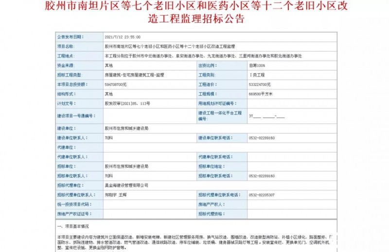 项目由胶州市住房和城乡建设局建设,总投资约5.947亿元,计划工期330天。快看有你家么?