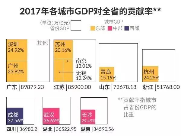 2017年,山东省GDP总量为72678.18亿元,青岛的贡献值占到15.19%。