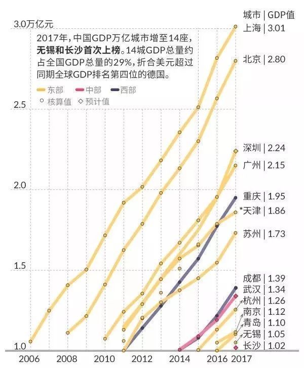 2017年,青岛的GDP总量达到11000亿元,成为中国14座GDP万亿城市之一。