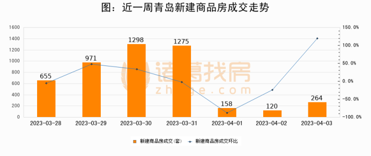 【青岛成交日报】04月03日新房成交264套、二手房332套;涨价房源114套