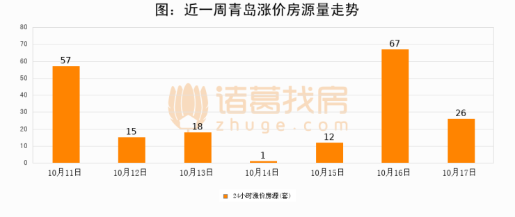 根据诸葛找房数据显示,青岛24小时涨价房源量为26套,较10月16日减少41套,环比下降61.2%。与此同时,涨价房源占比小幅回落,对于购房者来说是一个入市窗口期,购房者可抓住时机入市。