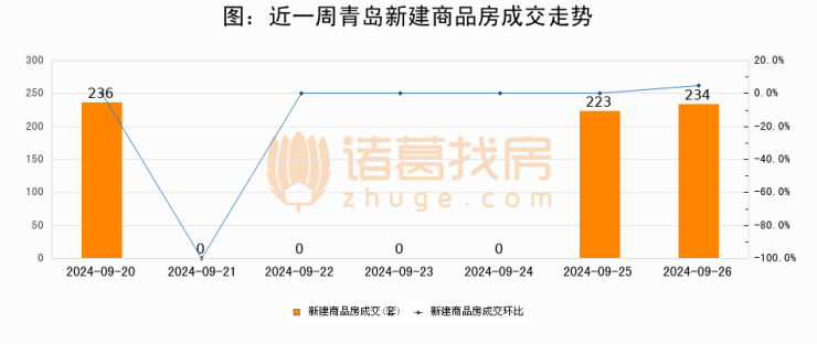 【青岛成交日报】09月26日新房成交234套、二手房228套;涨价房源123套