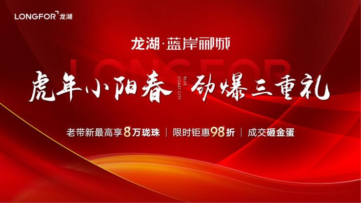龙湖·蓝岸郦城建面约90-120㎡学府准现房,今年买今年住,首付7万起!开年小阳春,劲爆三重礼!1.老带新成交较高可享8万珑珠;2.限时钜惠98折;3.成交现场砸金蛋。
