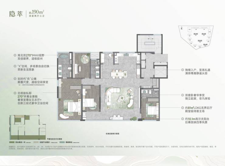 关于户型,“负公摊”只是基础,更重要的是空间的可变性和自由度。建面约190㎡户型南向面宽约17.5米、加上南北270°环幕主卧、X多功能弹性空间……这些在胶州市场上堪称“超配”,也直接瞄准了终极改善家庭的核心诉求:不只要住得下,更要住得好。