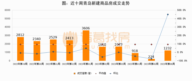 【青岛成交周报】第06周新房成交1232套,二手房764套,涨价房源1414套