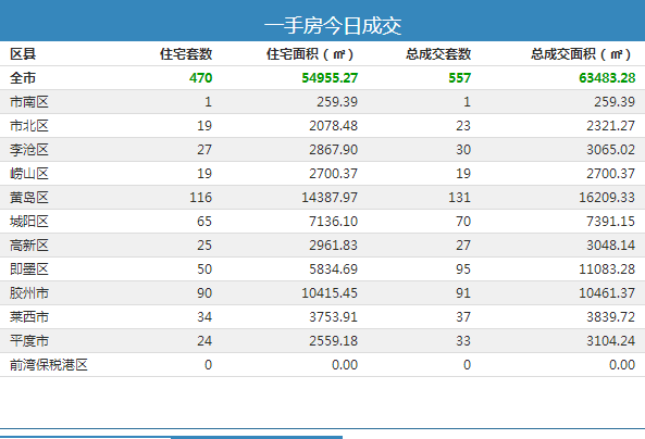 13日青岛新房成交557套 黄岛区住宅成交116套夺冠