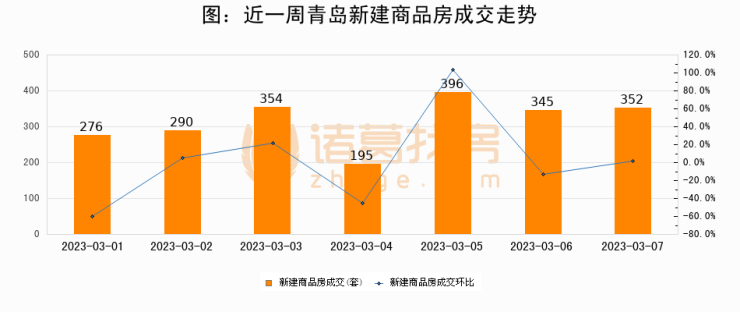 【青岛成交日报】03月07日新房成交352套、二手房349套;涨价房源101套