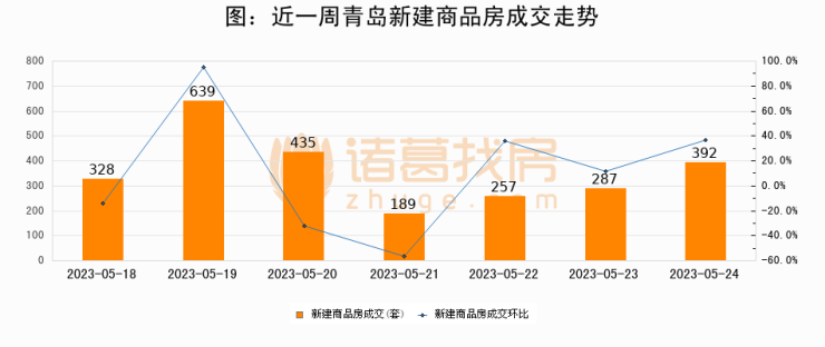 【青岛成交日报】05月24日新房成交392套、二手房267套;涨价房源96套