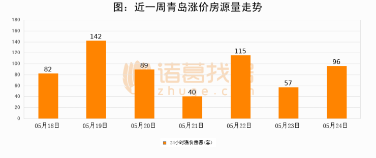 根据诸葛找房数据显示,青岛24小时涨价房源量为96套,较05月23日增加39套,环比上涨68.4%。与此同时,涨价房源占比小幅扩大,业主信心有所提升。