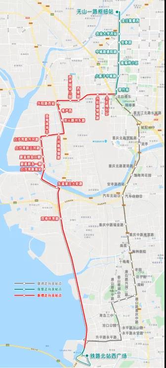 线路主站、副站不发生变化,为“天山一路枢纽站—铁路北站西广场”。