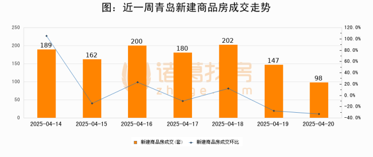 【青岛成交日报】04月20日新房成交98套、二手房55套;