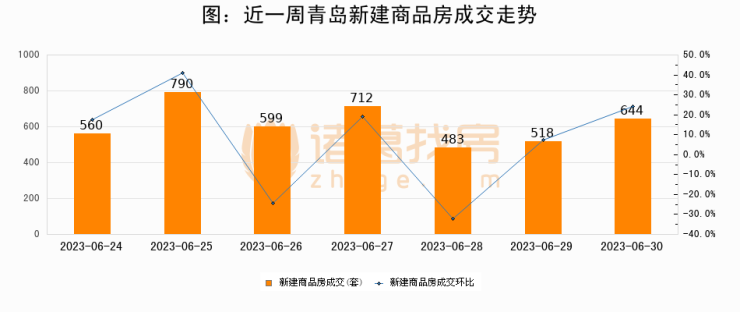 【青岛成交日报】06月30日新房成交644套、二手房200套;涨价房源42套