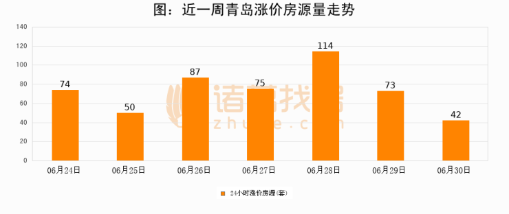 根据诸葛找房数据显示,青岛24小时涨价房源量为42套,较06月29日减少31套,环比下降42.5%。与此同时,涨价房源占比小幅回落,对于购房者来说是一个入市窗口期,购房者可抓住时机入市。