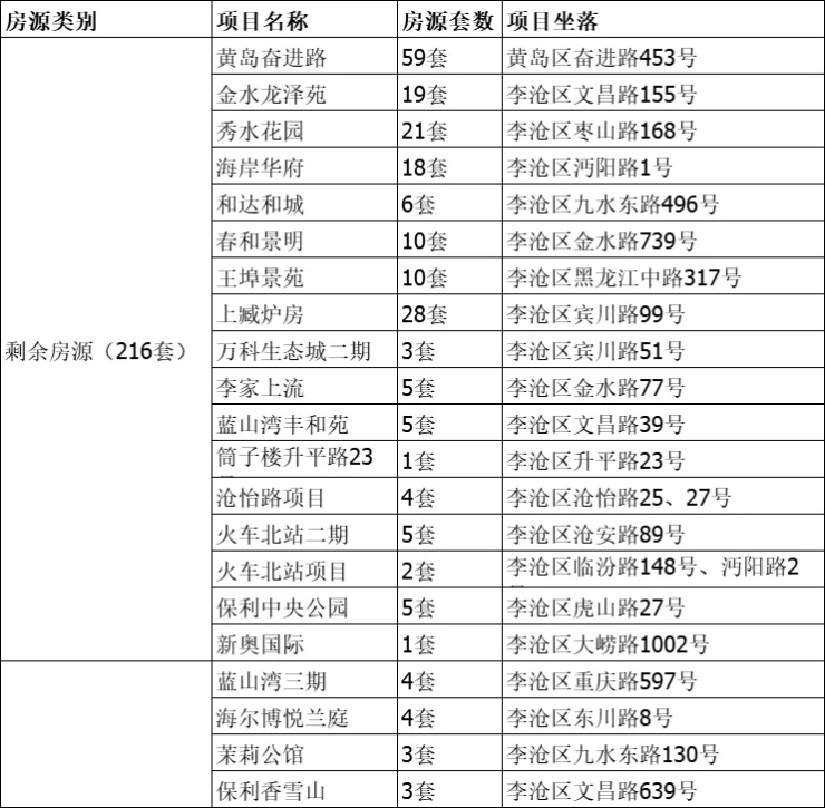 焦点答疑:李沧区配租公共租赁住房房源共计216套