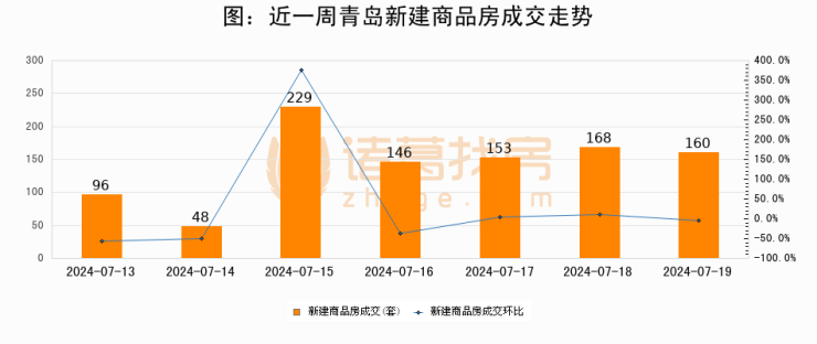 【青岛成交日报】07月19日新房成交160套、二手房231套;涨价房源33套