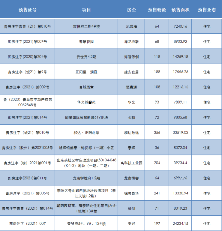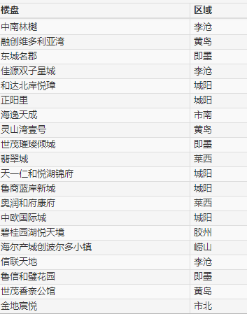从各区成交情况来看,上周原胶南市新建商品住宅成交115套,成交面积为13200.68㎡,位列上周各片区新建商品住宅成交面积和成交套数首位;即墨区以成交104套,成交面积11499.3㎡的成绩名列第二;胶州市以单周成交92套,成交面积10308.79㎡列第三位;