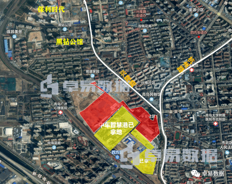 4月7日,老四方19.88万㎡地块毫无意外被中车科技园(青岛)有限公司获得,最后成交总价17.68亿,楼板价9705元/㎡。
