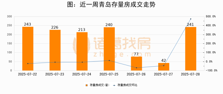 【青岛成交日报】07月28日新房成交230套、二手房241套;