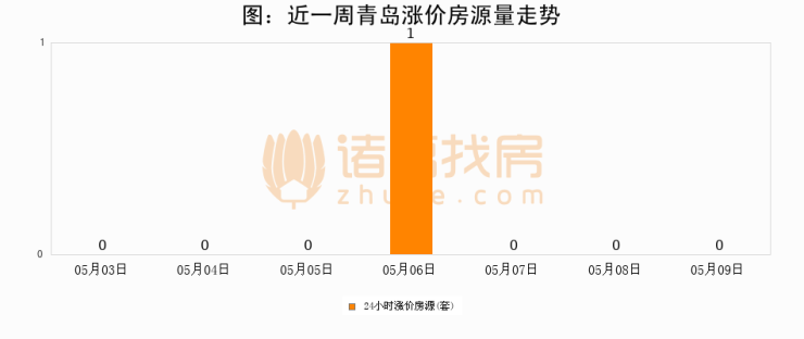 根据诸葛找房数据显示,青岛24小时涨价房源量为0套,较05月08日持平。