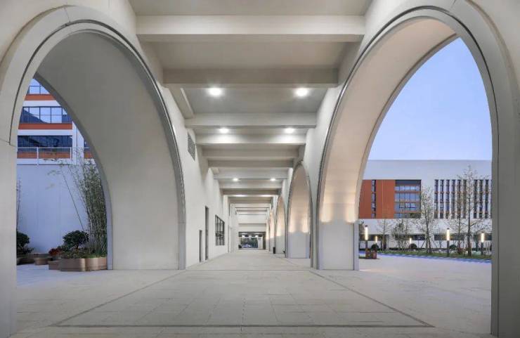 “九拱链桥”的创新性设计,将校园各个功能区联系一起,也让学生能够自由地进入学校各个区域,体现自由开放、智慧共享、集思广益的文化氛围。