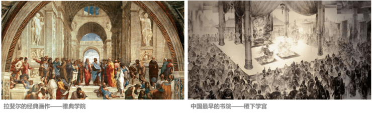 遵循着这一理念,君一控股在设计之初,就研究中西方书院的起源,力求从源头吸取灵感打造有别于当下的校园场所。最终以中国最早的书院“稷下学宫”和拉斐尔的经典画作“雅典学院”为灵感,创造性的融合了中西方传统建筑的精髓,以全新的设计手法呈现出一个属于青岛的文化新地标。