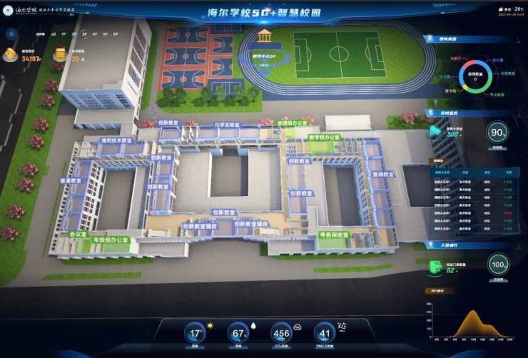 依托数字城市物联科技平台——海纳云,君一控股在校园的设计、建造过程中,将BIM技术应用于项目全生命周期中,节约成本,加快施工进度,并为投入使用后的安防、消防、能源、环境等智慧校园的建设奠定基础。同时,以科技和数字化,将教学楼、图书馆、体育馆、报告厅、学生餐厅、学生宿舍等校园设施与大数据、人工智能等现代科技深度融合,为海尔学校布满“硬核黑科技”,全面打造5G+智慧校园。