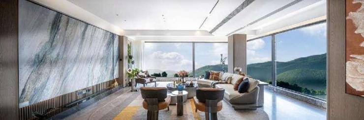 在室内精装上,和樾府甄选国际一线大牌,以高定美学契合塔尖所需,实现沉浸式感官享受,并考虑到青岛海洋性气候特点,采用造价昂贵的木饰面作为室内基调,让空间氛围更为质朴温润,精心选定碧海伽蓝等高端岩板,窗外是崂山山居式盛景,室内凝固着海的澎湃跃动,一席尽藏山海。