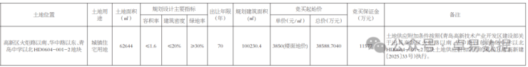 备注:土地供应附加条件按照《青岛高新技术产业开发区建设部关于出具高新区火炬路以南、华中路以东、青岛中学以北HD0604-001-2 地块土地供应附加条件的复函》(青高新建〔2025〕33号)执行。