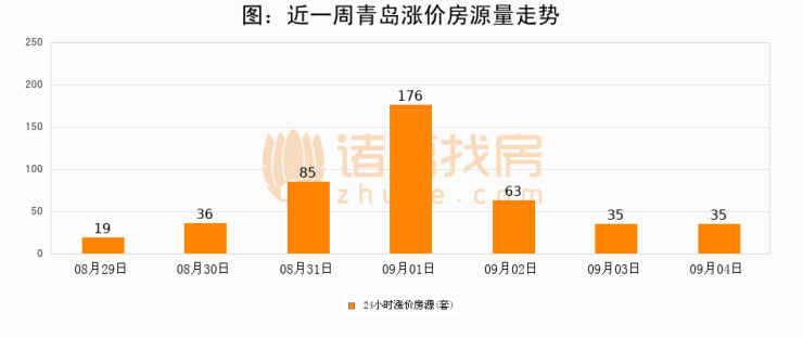 根据诸葛找房数据显示,青岛24小时涨价房源量为35套,较09月03日持平。