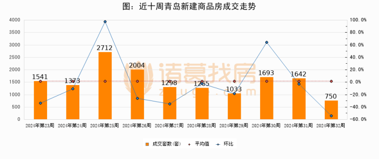 【青岛成交周报】第32周新房成交750套,二手房1244套,涨价房源333套