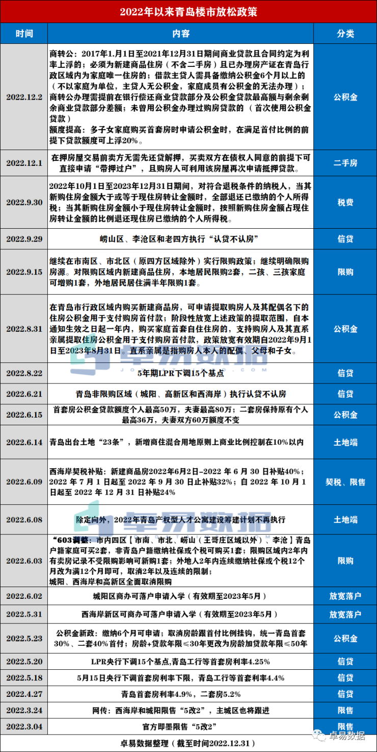 而青岛的政策放松也拉满,限购限售限贷、公积金等方面,而在土地市场端不再配建产权型人才公寓,商住地商业比例控制在10%。