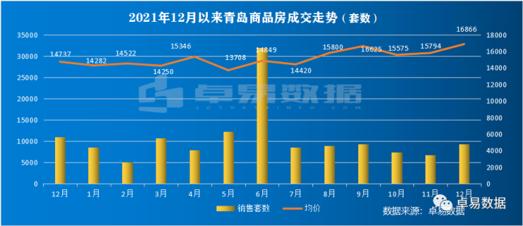 12月作为年底冲刺月,青岛新建商品房网签9275套(不含退房房源),成交面积116.37万㎡,成交总价196.28亿,环比分别上涨38.93%、50.02%、60.20%;同比分别下跌13.54%、11.81%、1.17%。