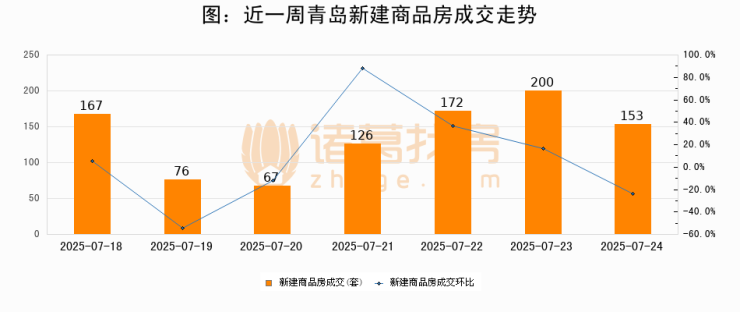【青岛成交日报】07月24日新房成交153套、二手房213套;