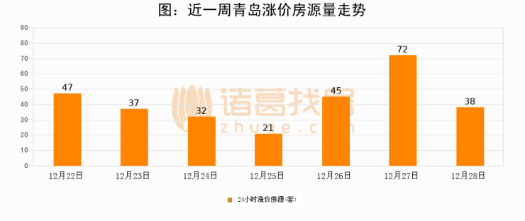 根据诸葛找房数据显示,青岛24小时涨价房源量为38套,较12月27日减少34套,环比下降47.2%。与此同时,涨价房源占比小幅回落,对于购房者来说是一个入市窗口期,购房者可抓住时机入市。