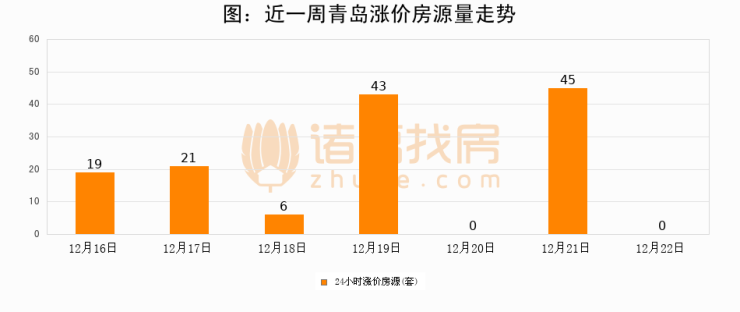 根据诸葛找房数据显示,青岛24小时涨价房源量为0套,较12月21日减少45套,环比下降100%。与此同时,涨价房源占比小幅回落,对于购房者来说是一个入市窗口期,购房者可抓住时机入市。