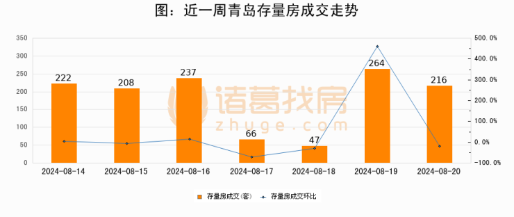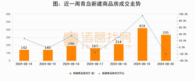 【青岛成交日报】08月20日新房成交335套、二手房216套;涨价房源44套